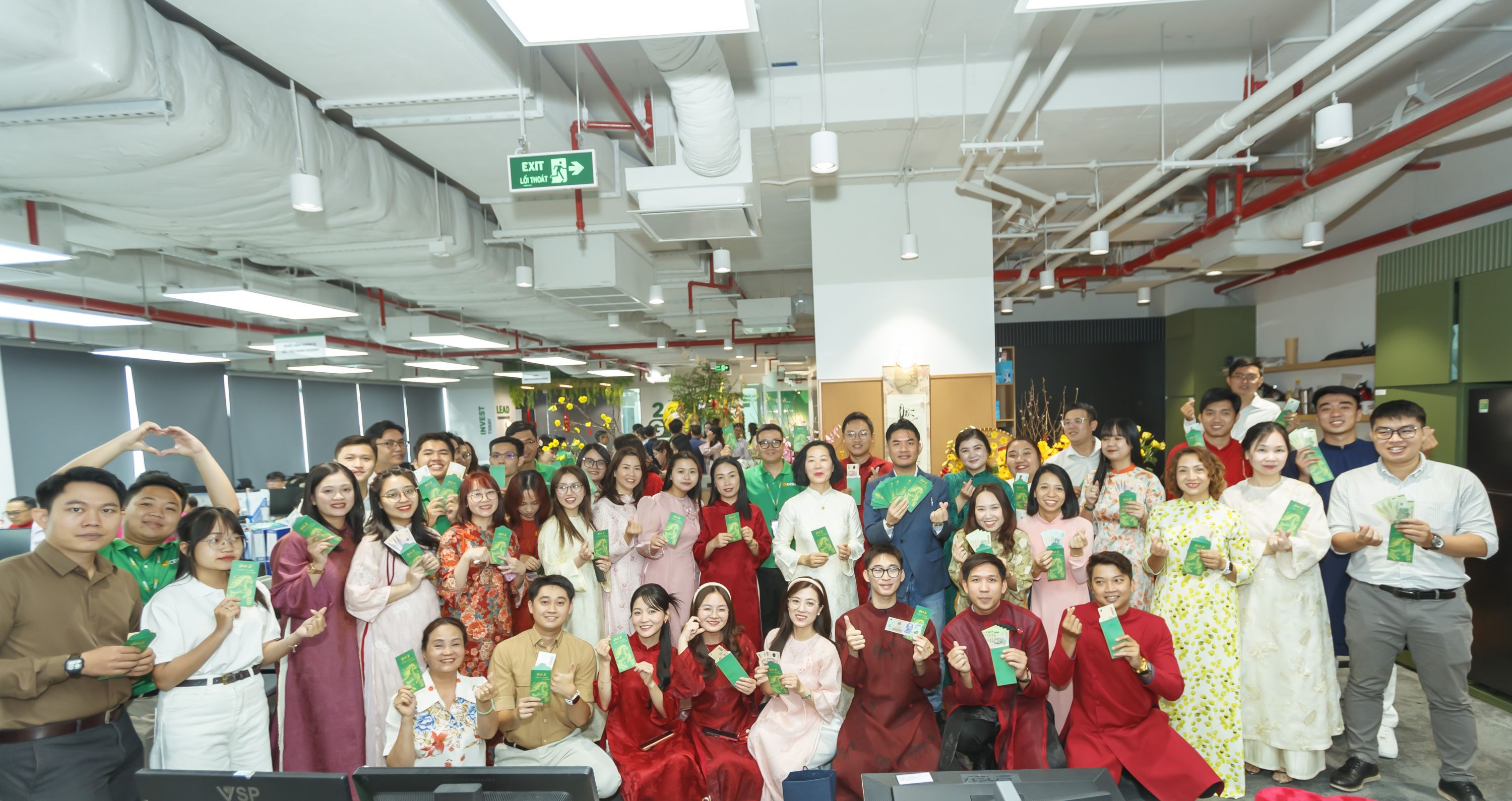 Hòa trong không khí tươi vui, nhiều chị em OCBS đã diện những tà áo dài thướt tha, rực rỡ sắc màu, tô điểm cho văn phòng thêm phần xuân sắc. Các anh cũng lịch lãm trong những bộ vest chỉn chu, tất cả cùng nhau tạo nên một bức tranh OCBS ngập tràn năng lượng tích cực và vẻ đẹp văn hóa truyền thống.