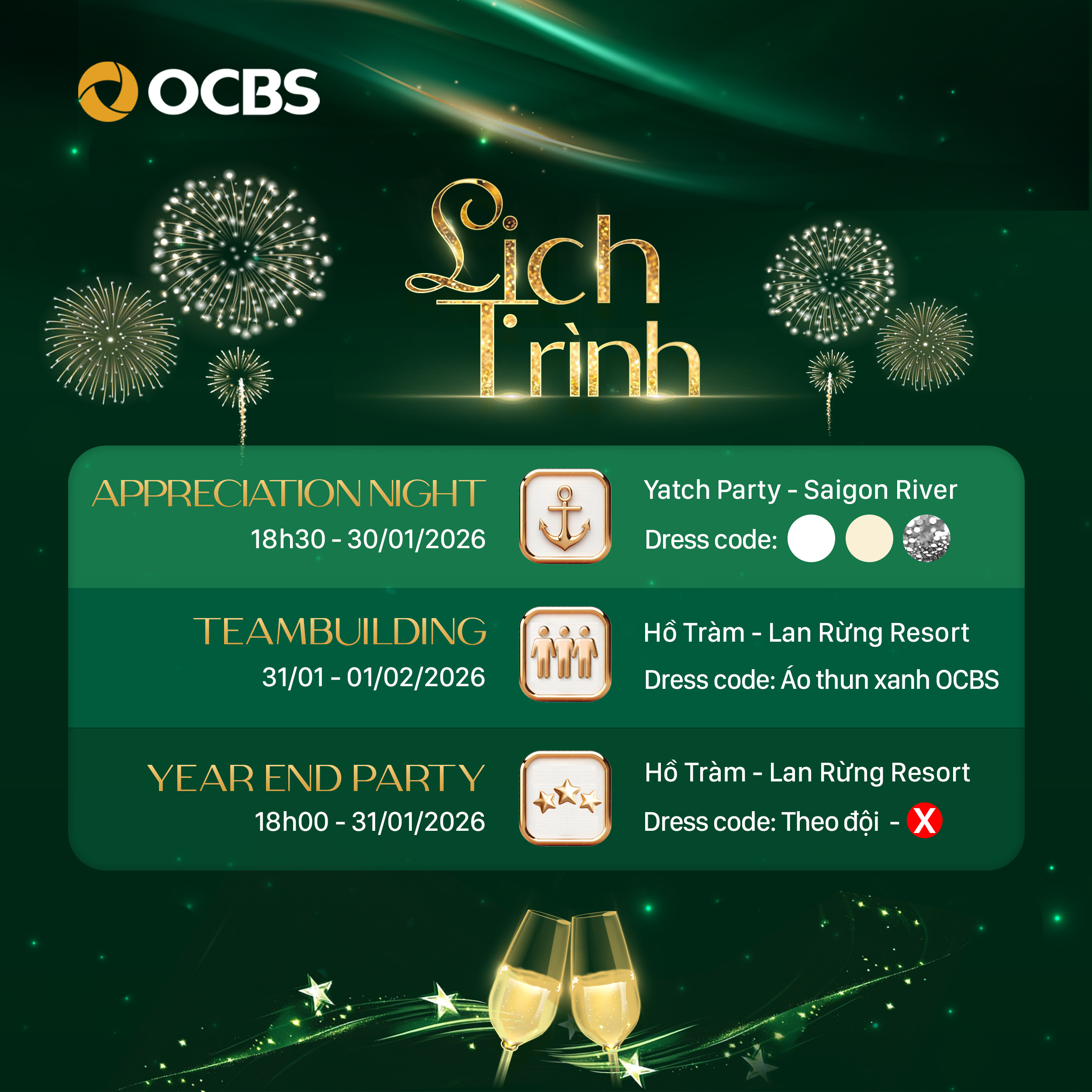 Thời khắc mà cả đại gia đình OCBS mình cùng ngóng đợi cuối cùng cũng đã tới! Một năm với thật nhiều nỗ lực và thành quả đáng tự hào sắp khép lại, nhường chỗ cho một Đại hải trình kết nối trái tim - One Journey Together cực kỳ đặc biệt, diễn ra từ 30/01 đến 01/02/2026. Hãy cùng nhau lên lịch và chuẩn bị tinh thần cho 3 ngày 2 đêm đáng nhớ này nhé!
